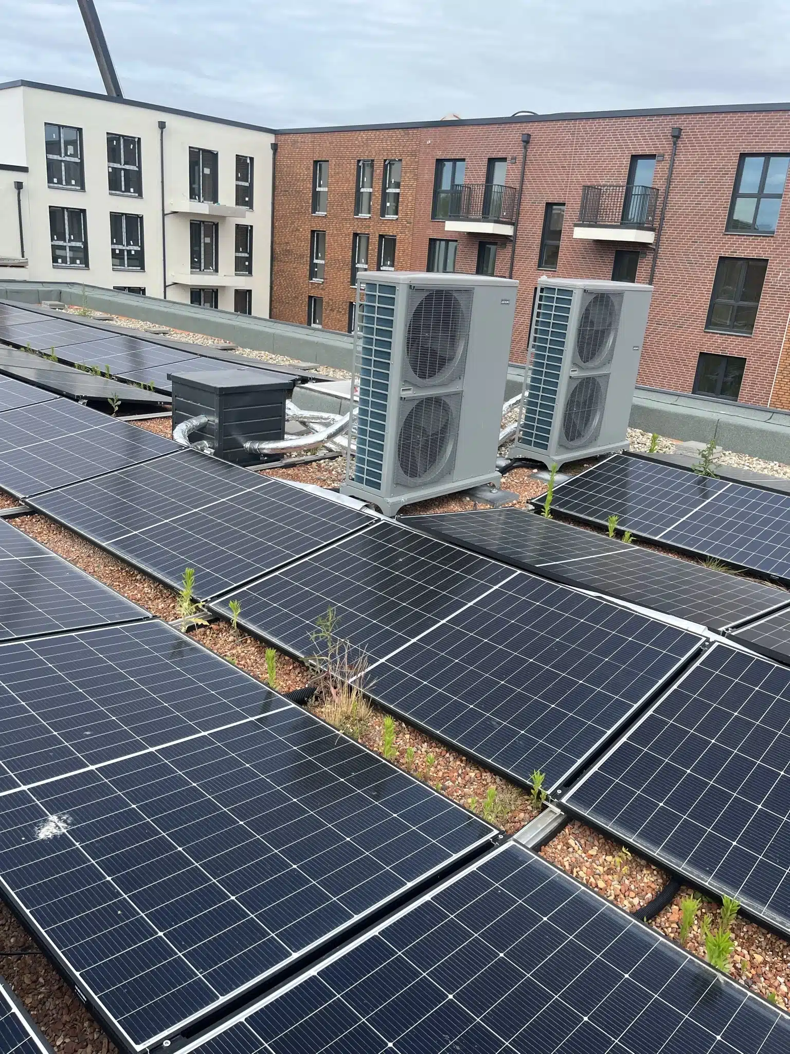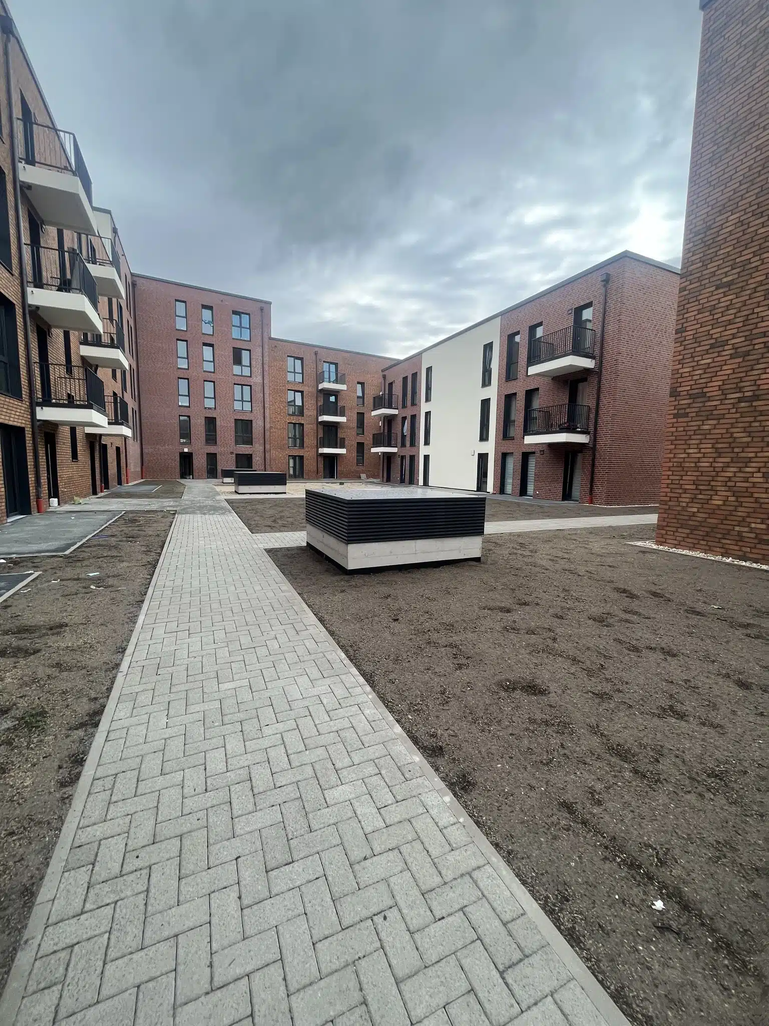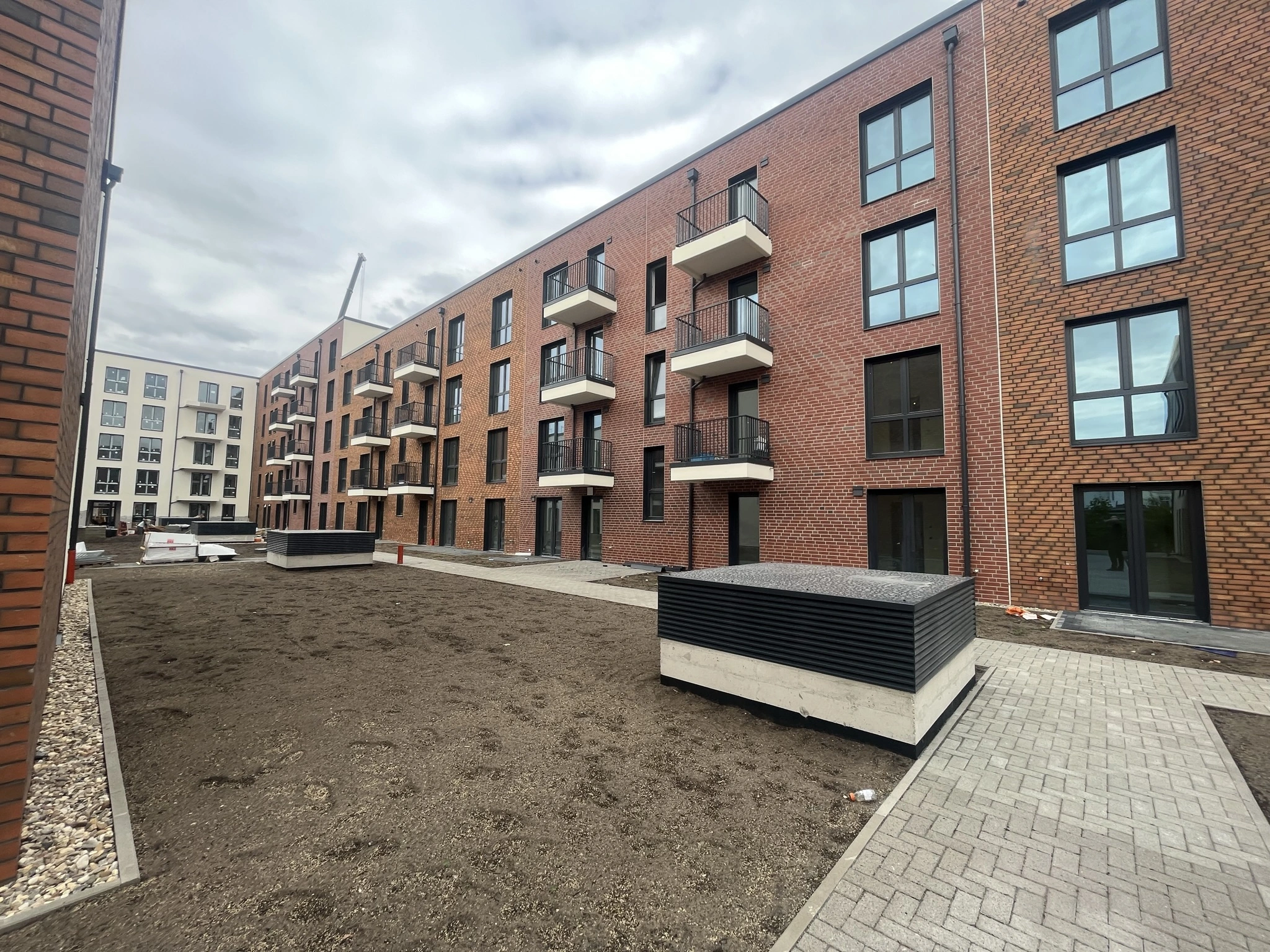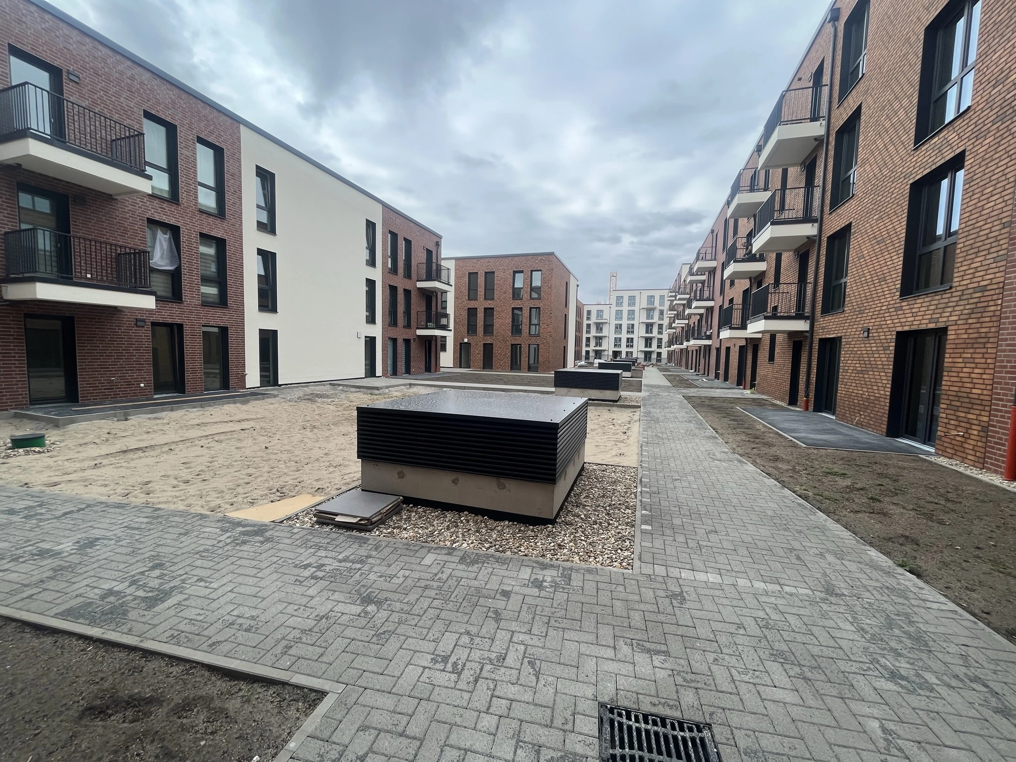 Neubau von 12 Gebäuden mit einer gemeinsamen Tiefgarage. Insgesamt sind 150 Wohneinheiten entstanden. Im Haus L ist ein Seniorenheim entstanden. Die Realisierung der Luftversorgung erfolgt über zentrale Lüftungsgeräte mit Wärmerückgewinnung auf dem Dach. Die Heizungs- und Trinkwarmwasserversorgung wird über auf dem Dach stehende Wärmepumpen realisiert. Zusätzlich sind auf allen Dächern Photovoltaikanlagen installiert. Die Baukosten für die technische Gebäudeausrüstung liegen bei 7,6 Mio. Euro netto.